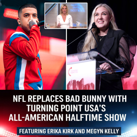 In a stunning turn of events, the NFL has replaced Bad Bunny with Turning Point USA’s “All-American Halftime Show,” featuring Erika Kirk and Megyn Kelly in the spotlight at Super Bowl 2026. The announcement sparked waves of discussion across social media and major news platforms, as both supporters and skeptics weighed in on the daring decision. With a show themed around faith, family, patriotism, and American values, which promises a performance unlike any seen before, this year’s Super Bowl halftime is sure to be the most talked-about spectacle of all.